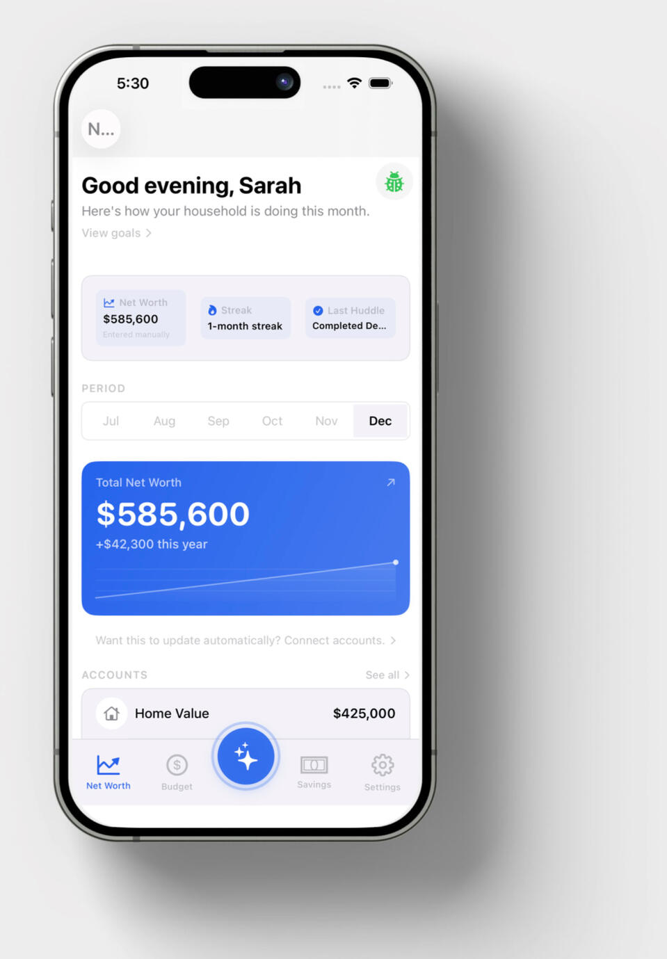 Huddle Al helps couples talk about money without exposing every transaction or account. Clarity where it matters. Privacy where it counts.